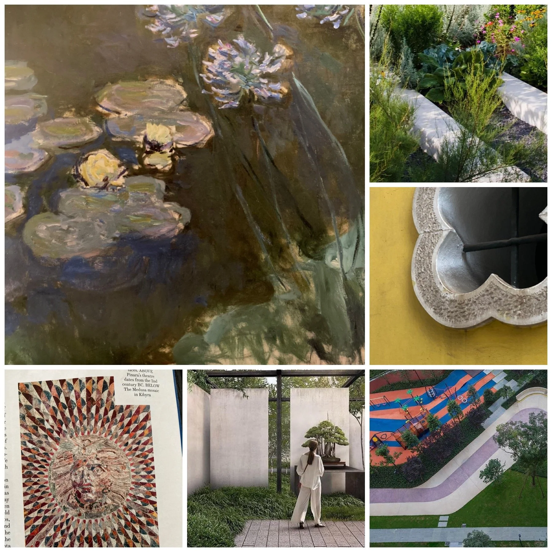 All the materials should be sustainable and durable. The level will be alined to the house level in order to drain the rainwater. The source for this project is a painting from C.Monet cited by the client has his favorite painter. The design concept is born arround the “Nympheas et Agapanthes" (Waterlillies a. Agapanthus) included in the moodboard. The theme of water and blue color palette are central in this project as in the work of Claude Monet.